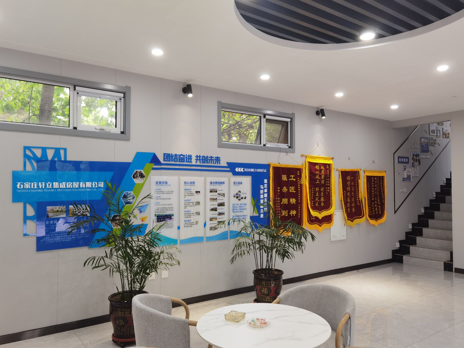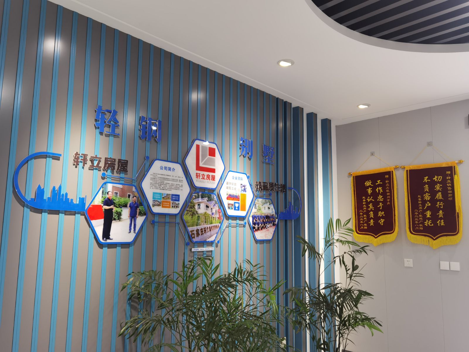 在石家莊軒立集成房屋有限公司的3號樣板樓中,掛滿了很多錦旗和榮譽資質(zhì),滿墻的榮譽承載著軒立以往努力的成績,是軒立全體員工共同努力發(fā)展的體現(xiàn),也是軒立深耕輕鋼建筑行業(yè)十年的見證。